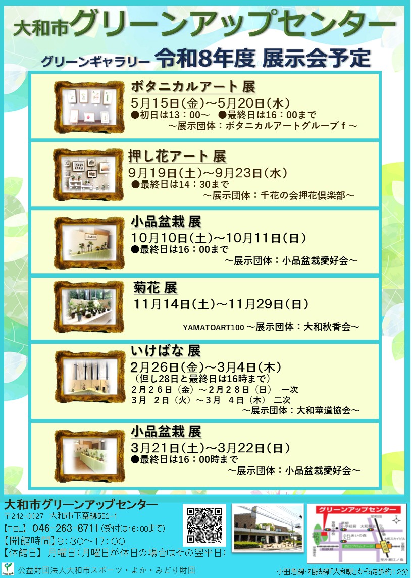 グリーンアップセンター内にあるグリーンギャラリーでは、年間を通じて様々な展示を行っています。ぜひお立ち寄りください。
