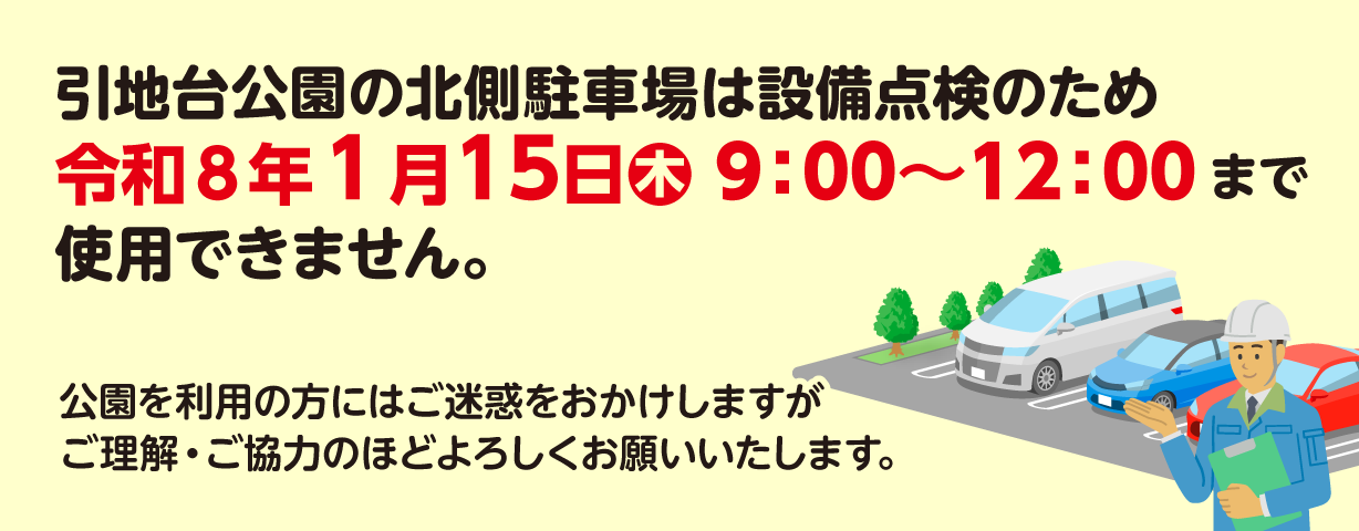 ・土日祝は公園の周辺道路や駐車場の混雑が予想されます。