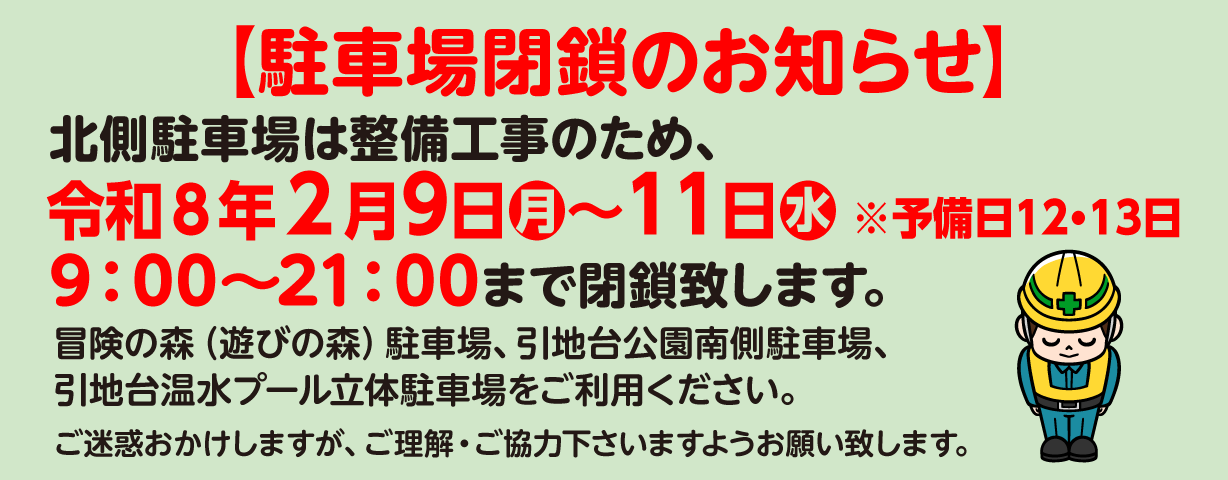 ※ロータリー側の駐車場は芝生広場になりました。立体駐車場(有料)、北側臨時駐車場、南側駐車場をご利用ください。