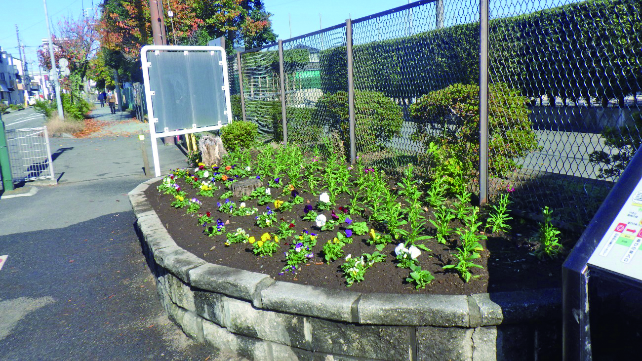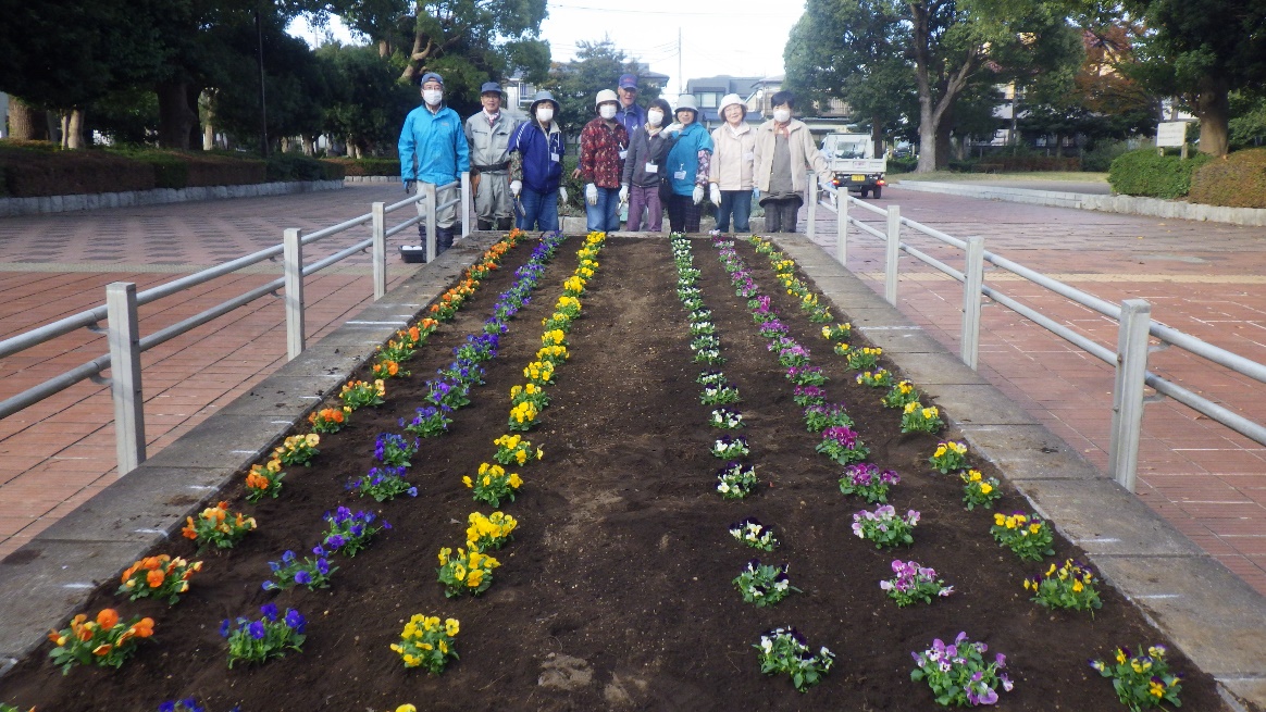 ※活動の様子(11月はバスロータリー近くの花壇内に花苗を植えました。)