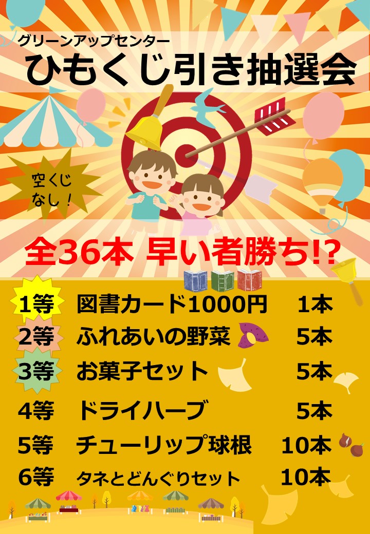 クラフトに参加の方にヒモくじなど豪華?景品あり(先着36名限定)