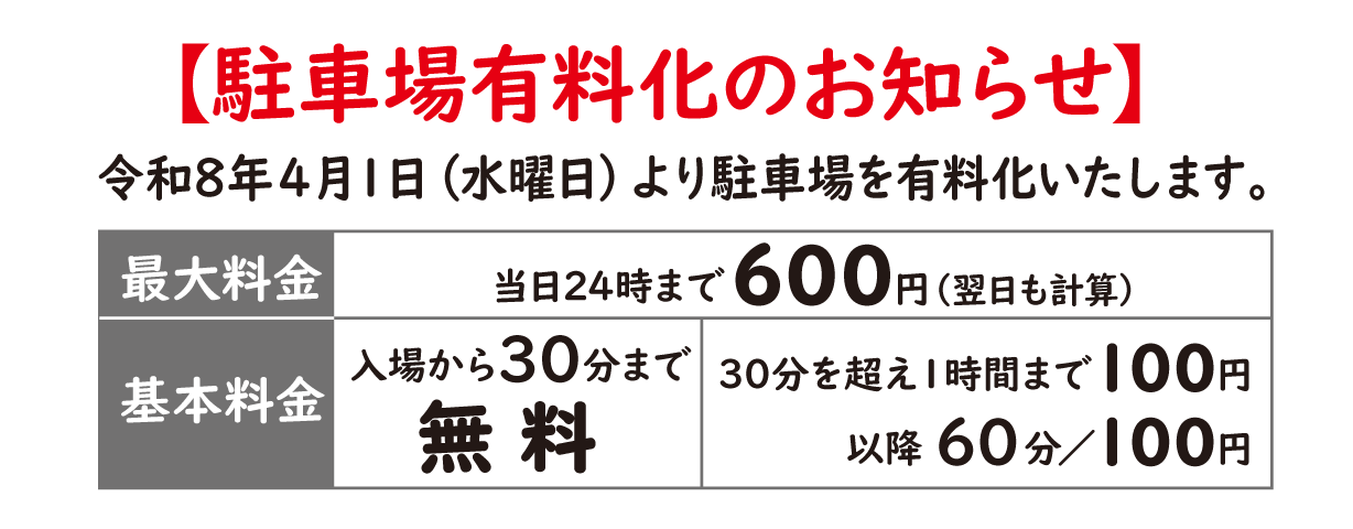 駐車場有料化のお知らせ