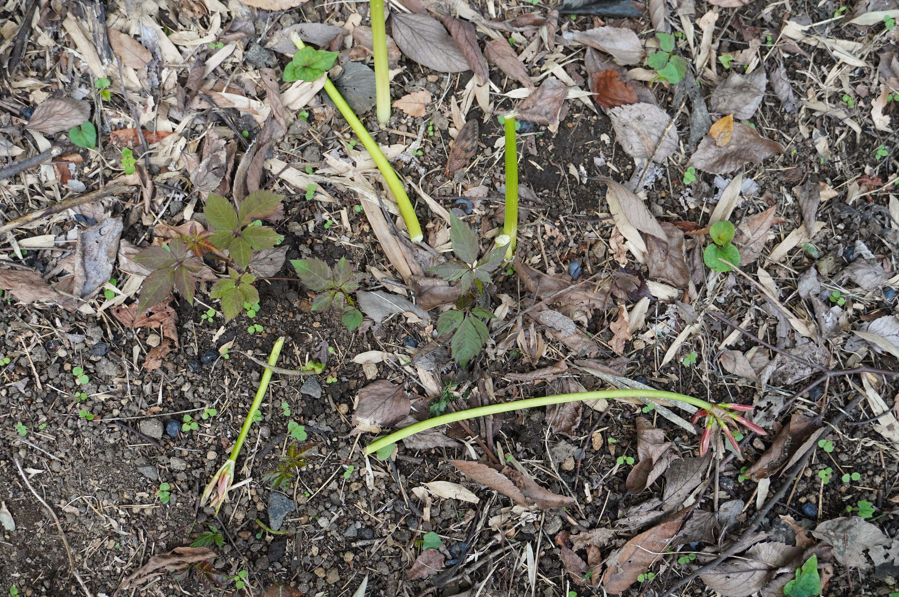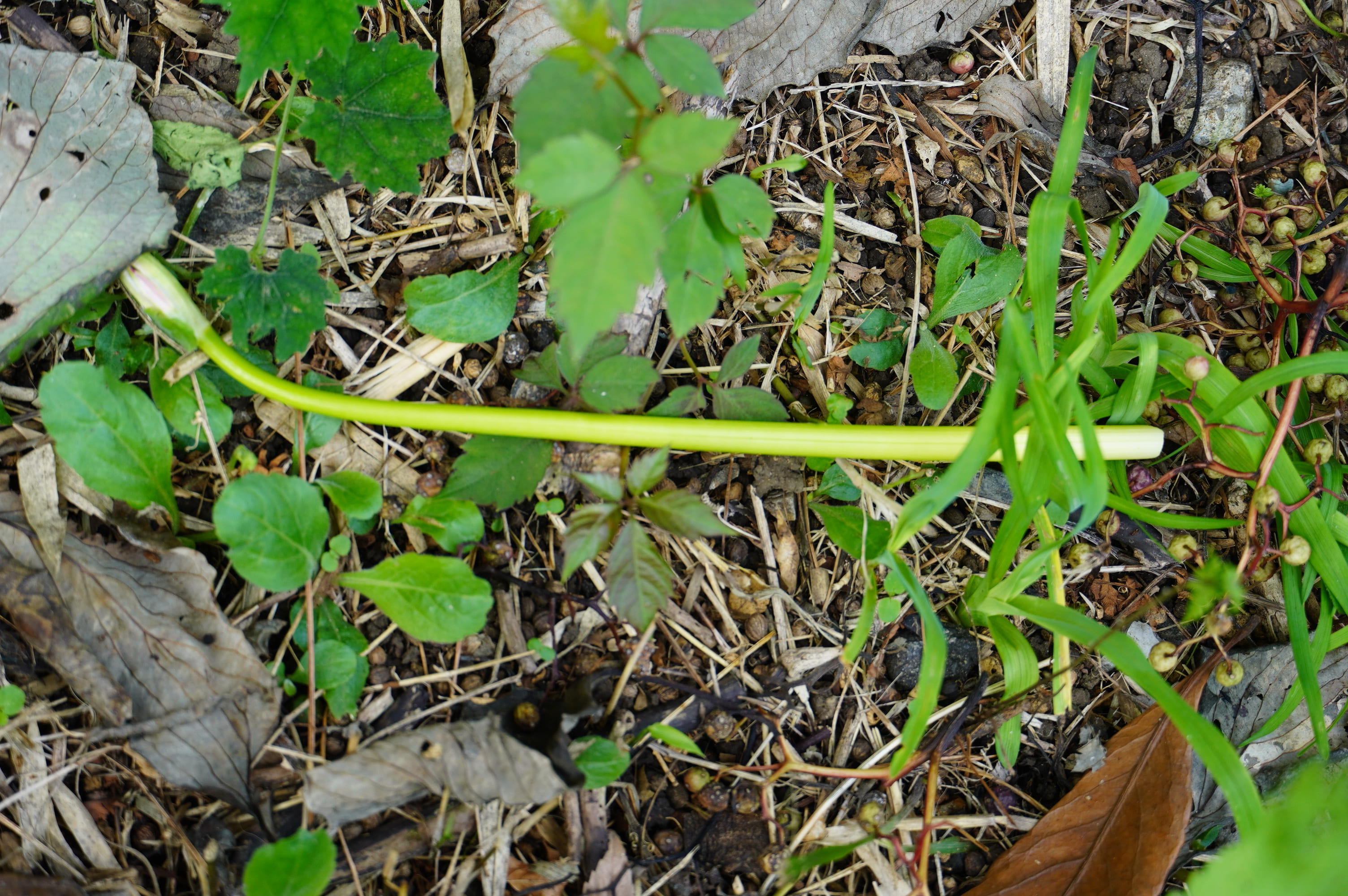 ヒガンバナの花茎が伸びてきましたが、本数は少なく、開花した株もまだありません。
