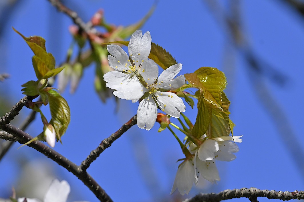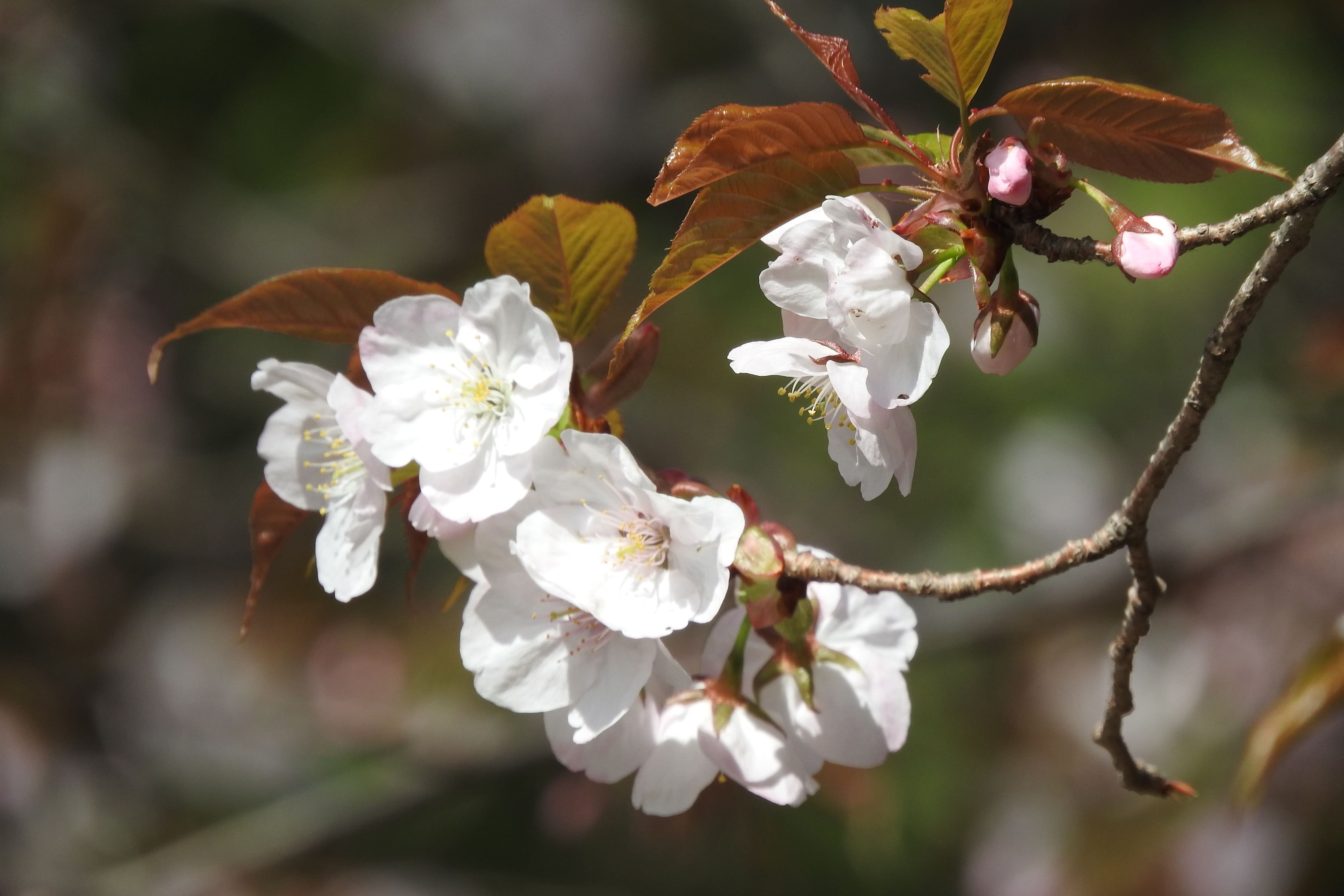 ヤマザクラは花と葉が同時に出ます。写真映えしますね。