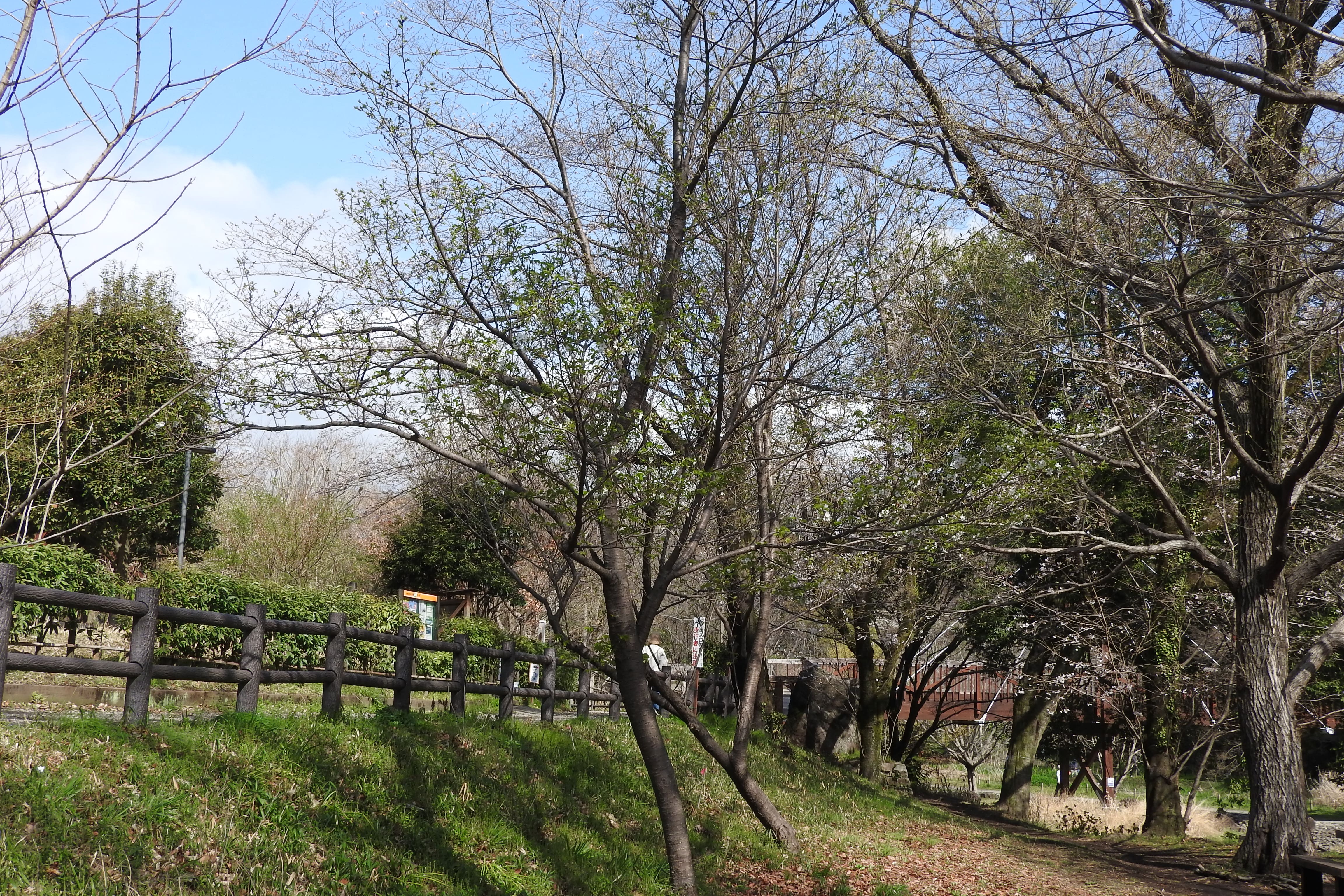 桜の開花がかなり進みました。開花状況は木によってばらつきがありますが、しらかしの池周辺のソメイヨシノはかなり開花が進み、満開に近い状態のものもあります。しらかしの池周辺は、平均すると5分咲きぐらいになるかと思います。一方で、しらかし広場は3~4分咲き程度と遅めで、こならの広場にあるヤマザクラやオオシマザクラも1分咲き程度です。全体の見頃は来週になるかと思います。