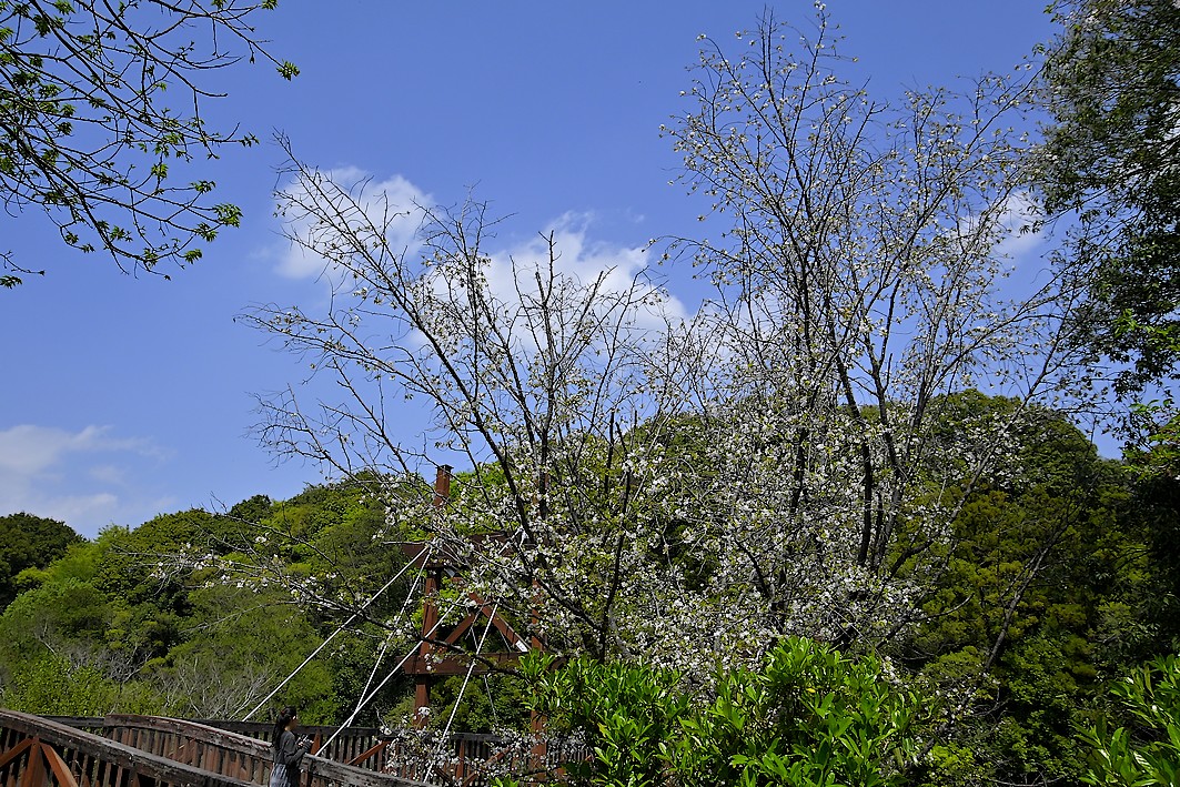最近、雨が多いですね。こうなると心配なのが、サクラの花びらが散ってしまうこと。もちろん泉の森のサクラも花は散りはじめており、満開を過ぎたしらかしの池の西側は葉の緑が目立ち始めましたが、ほかのところでは、まだ見ごろです。