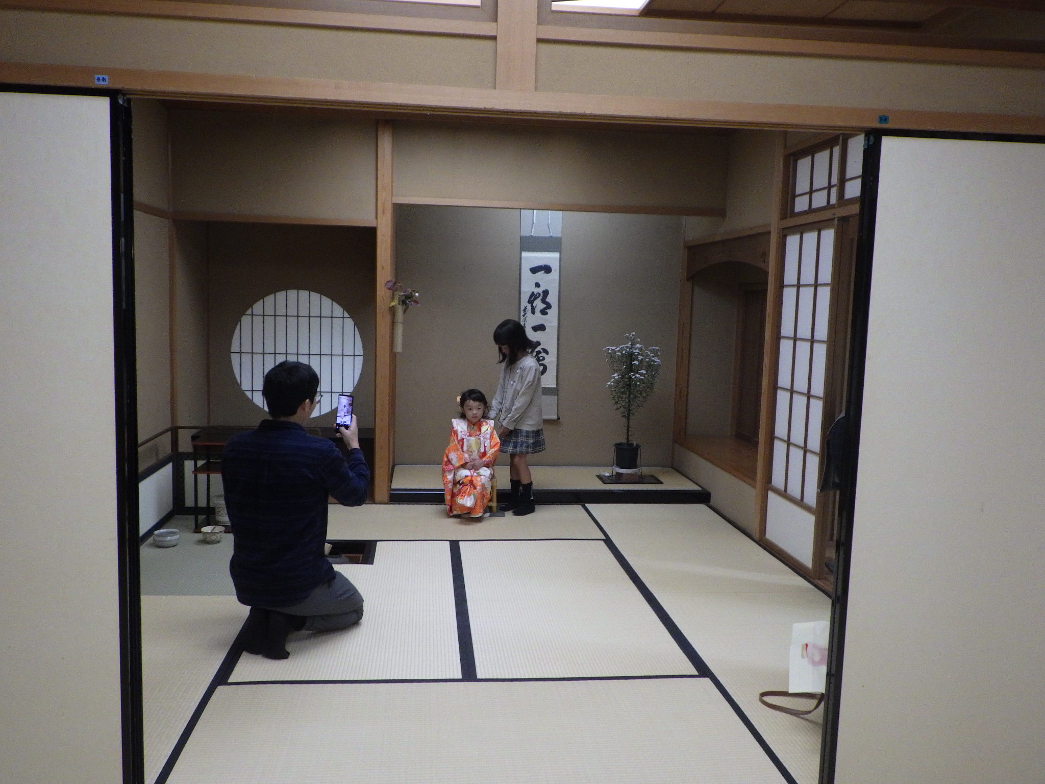 「写真撮影のおすすめスポット」を周って撮影してくれたご家族や、普段あまり足を踏み入れる機会がない茶室をゆっくりと見学されたり、思い思いに撮影を楽しまれていました。