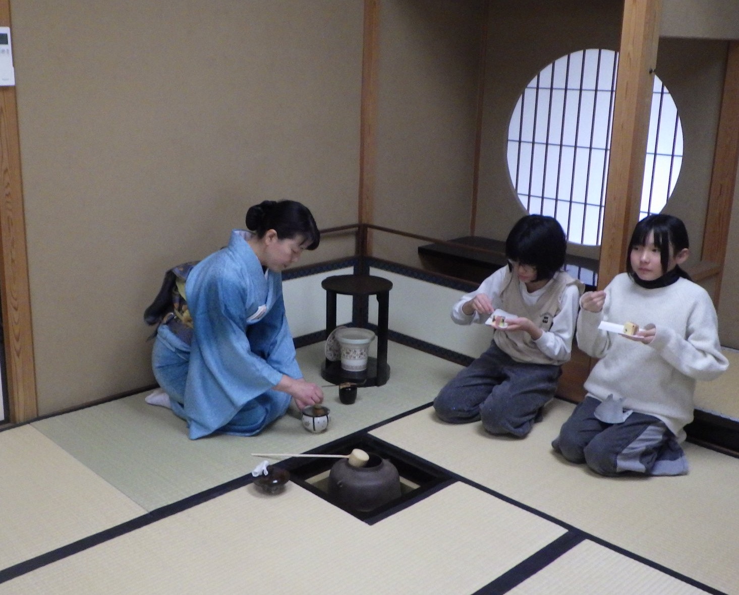 この教室では、一服のお茶を心をこめて点て、その心をいただくという茶道の体験から、おもてなしの心や和室での礼儀作法を学びます。