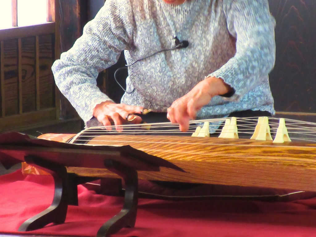 続いて、当園の演奏会恒例である、箏による民話の弾き語りが披露されました。