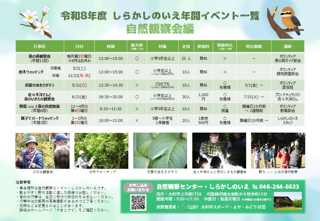 などをご覧ください。令和8年度 泉の森観察会