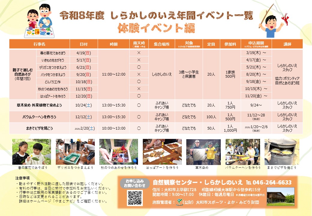 令和8年度 しらかしのいえ年間イベント一覧