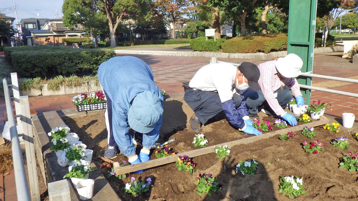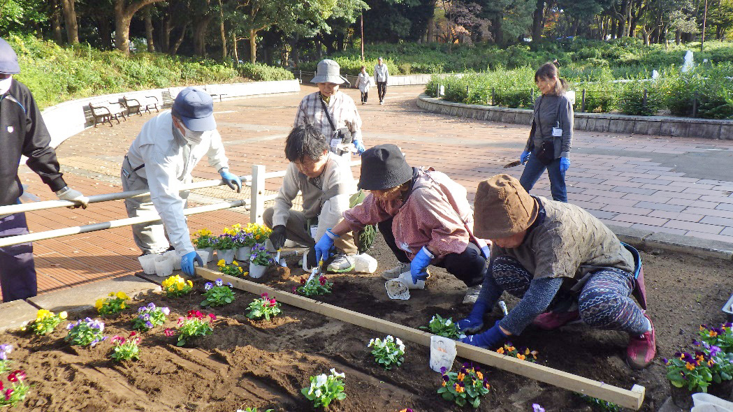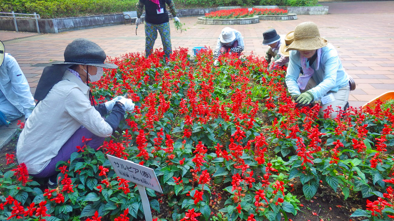 引地台公園ではボランティアのみなさんと花壇のお世話を実施しています。