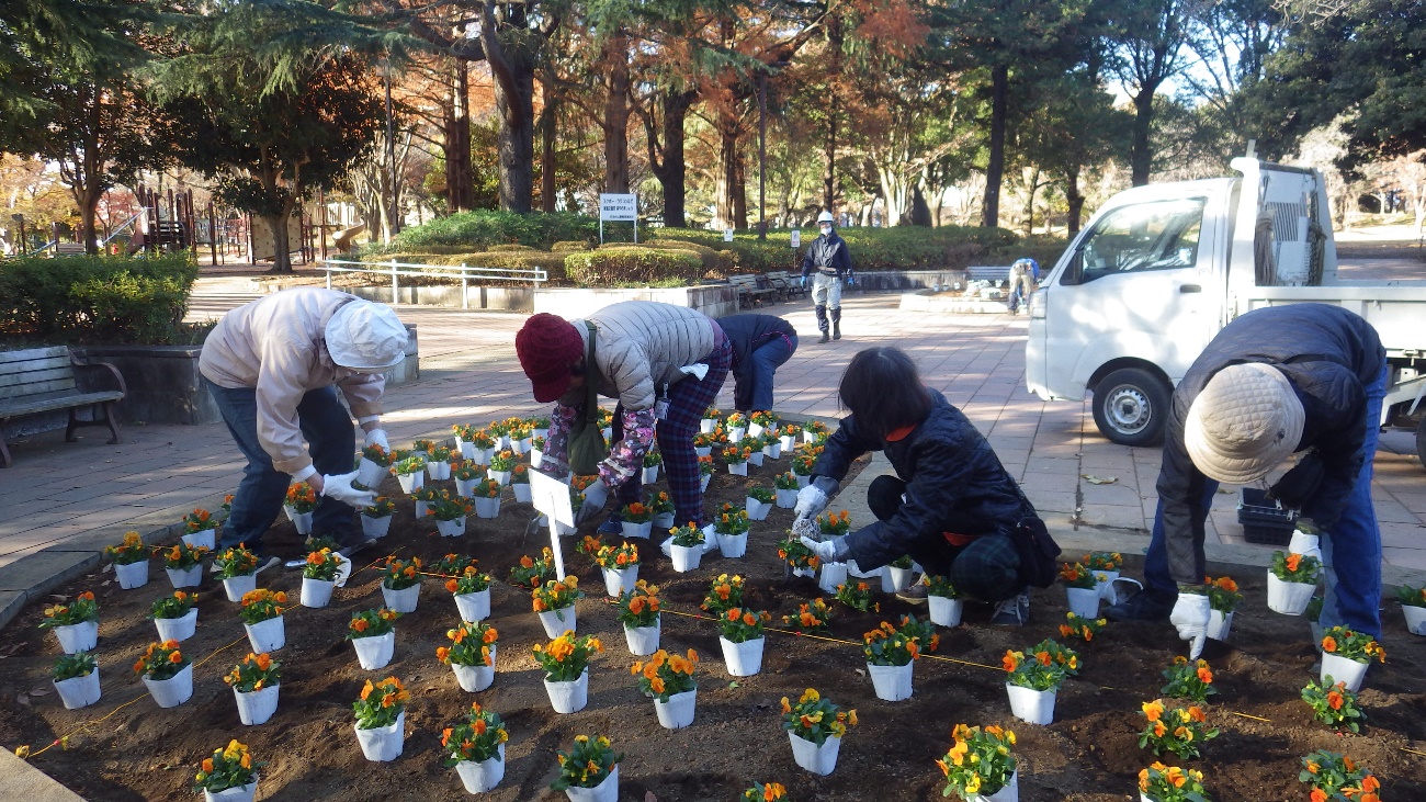 共同カイテックみらいパーク(引地台公園)ではボランティアのみなさんと花壇のお世話を実施しています。