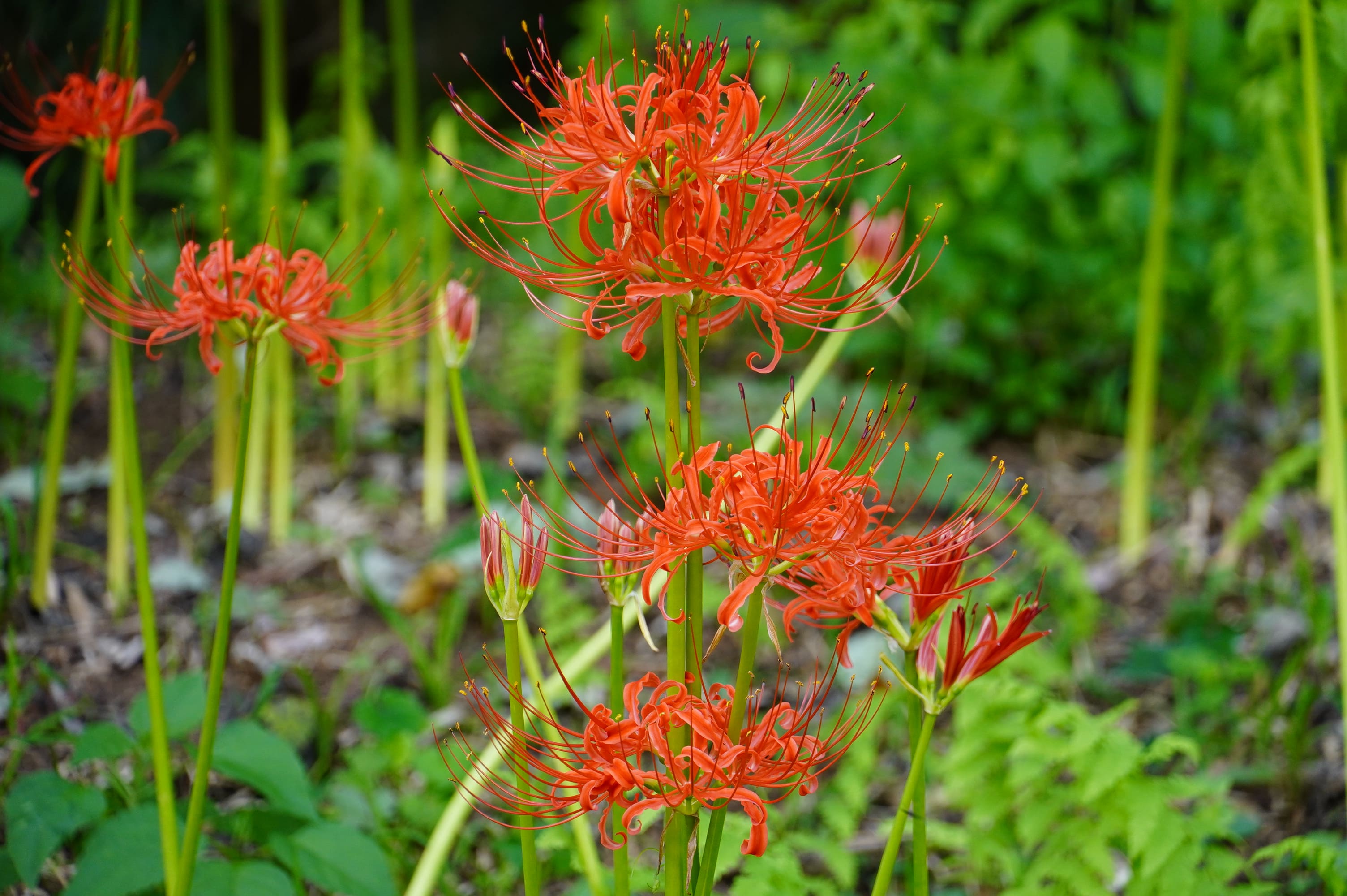赤いヒガンバナは、遺伝的に実が熟さない「三倍体」の植物なので、球根を分けて株を増やします。ソメイヨシノのように、よく見かけるヒガンバナはすべて同じ遺伝子型のクローンということになります。