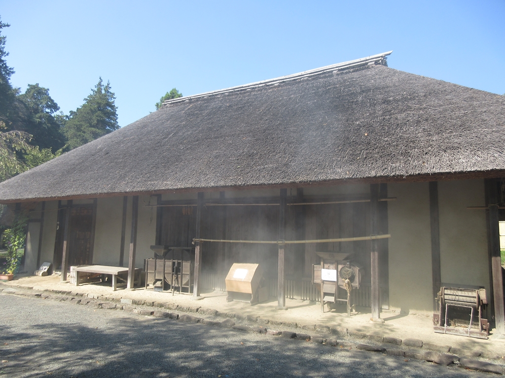 ここで言う燻蒸とは、家屋を長持ちさせるために室内全体を燻す作業のことです。木材を燃やして出る煙には、柱や茅葺き屋根の防虫・防菌等の効果があります。かつての民家ではイロリやカマドの日常使いによって、自然と燻蒸の効果が得られていたと考えられるため、当園はイロリでの火入れを毎日実施して民家の保全に努めています。