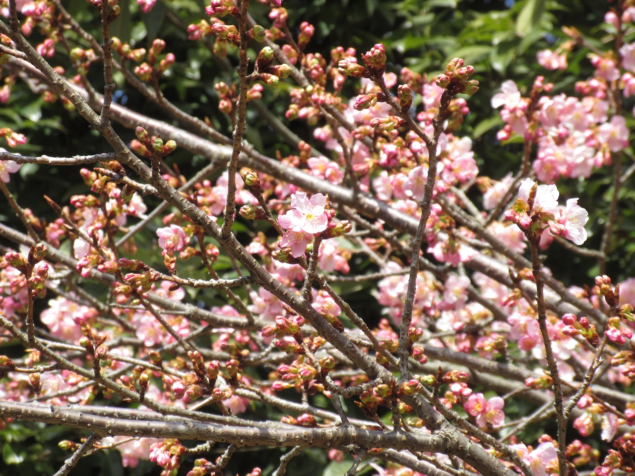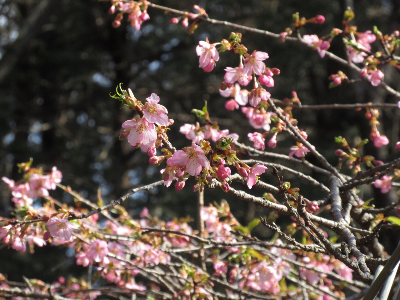 民家園入口外のカワヅザクラも花が目立つようになってきました。園内のカワヅザクラは、本格的に開花するまではもう少しかかりそうです。