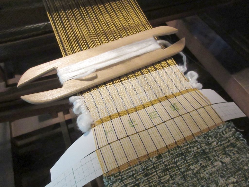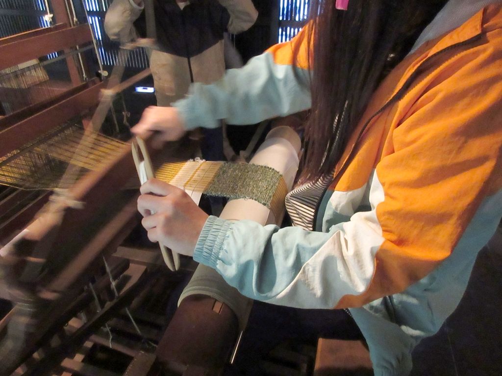 教室の最後に、旧北島家に置いてある機織り機を実際に動かす体験を行いました。参加者の皆様は初めて機織り機を動かしたそうですが、とても綺麗に織れていましたよ。